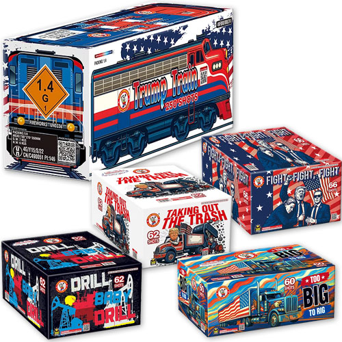 250th anniversary addition 500g cake assortment from Winda! Featureing 250-shot assorted case features unique red, white and blue unique performances to salute the year leading up to our nation's 250th birthday