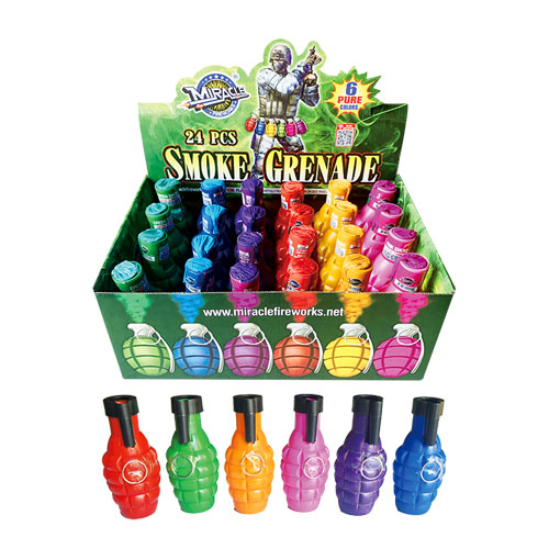 Long lasting colorful smoke grenades in 6 different colors. These last over a minute each with pure color smoke at a pull of the string.