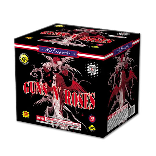 Guns N' Roses is a 500g cake with 20 shots that features these great effects: