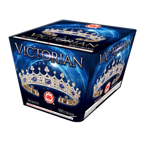 Victorian is a 34 shot 500 gram fan cake from Red Lantern. The vivid colors fill the sky with multiple effects.