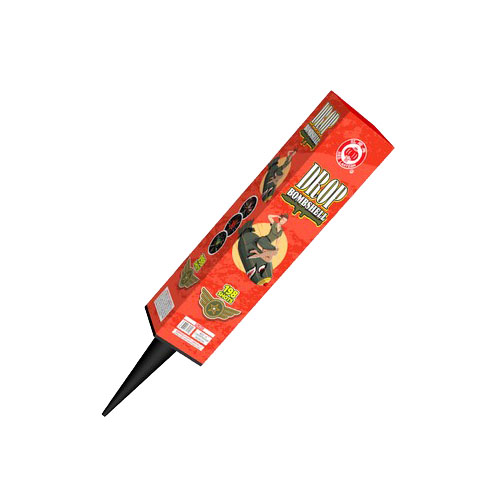 Drop Bombshell is a 198 shot large roman candle that shoots color pearls with crackling reports. Very Nice.