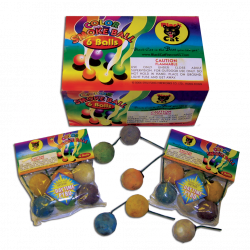 6 pack of color smoke balls from Black Cat: Red, blue, green, orange, purple and white smoke.